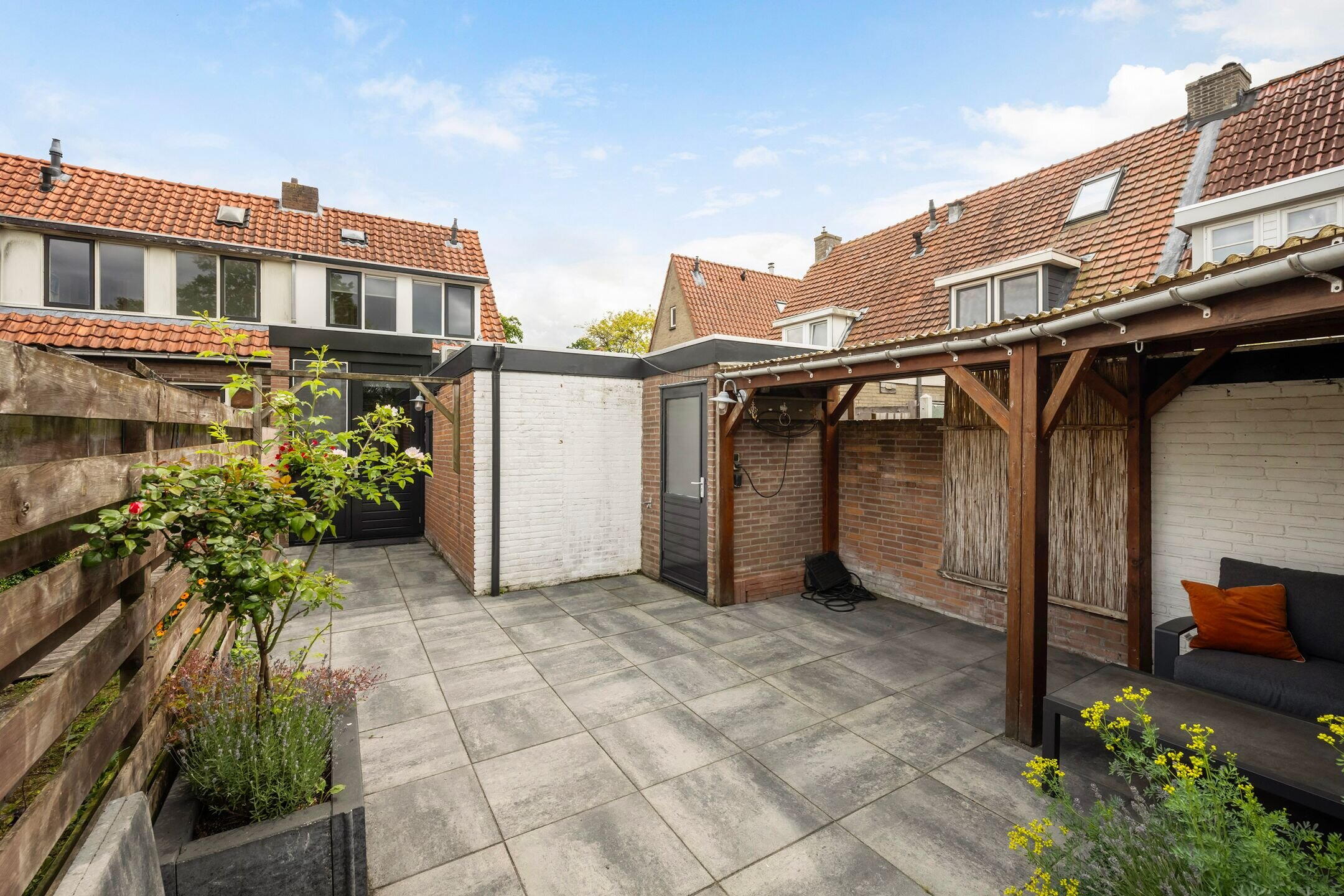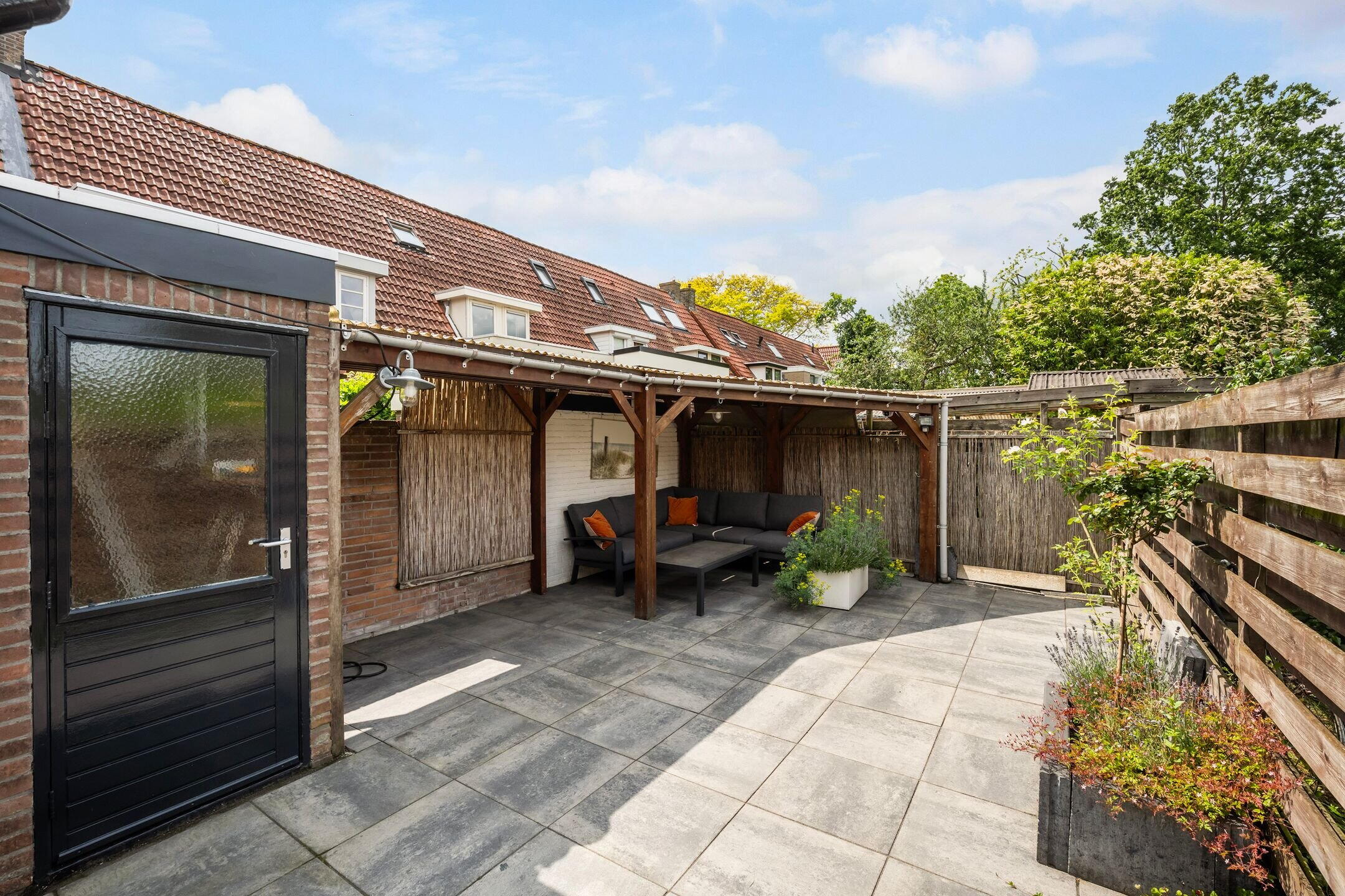 Buiten geniet u van de verzorgde achtertuin met overkapping, achterom en stenen berging.